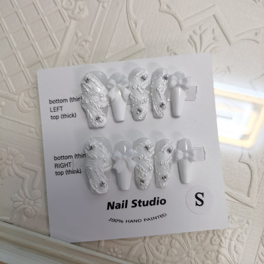 We specialize in hand-wearing nails. Each pair of nails is handmade by experienced manicurists. The pure hand-made press on nails is very different from the factory-made nails. The materials we use are very environmentally friendly and healthy, just like the ones you use in the salon, and we can use the nail design more flexibly to make the nails more elegant, Beautiful.