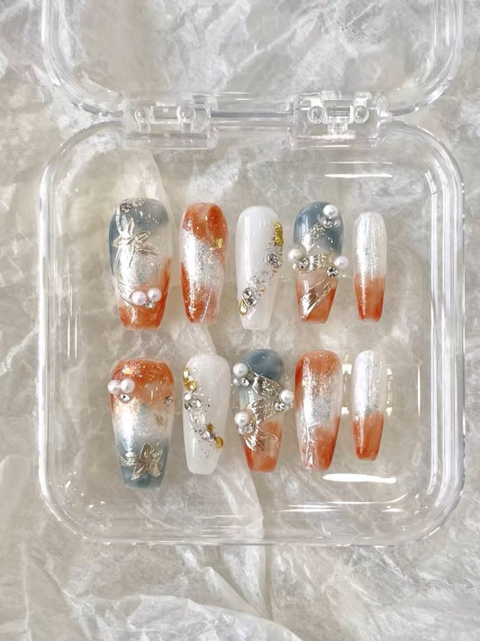 Manual Phototherapy Nail with Shining Star River Press on Nail