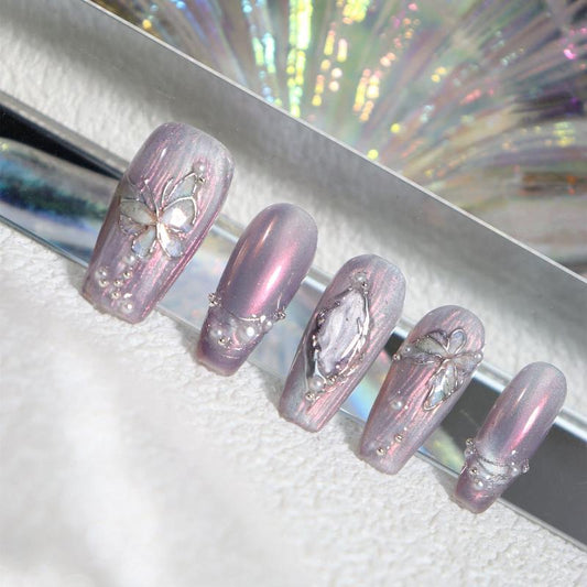 Heavy Handmade Gold Crochet Flower Flower Short NailsHandmade Press On Nail