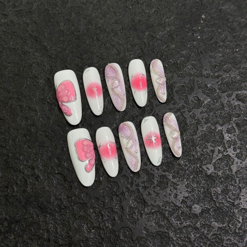 Blush Butterfly Chain Nail Handmade Press On Nail